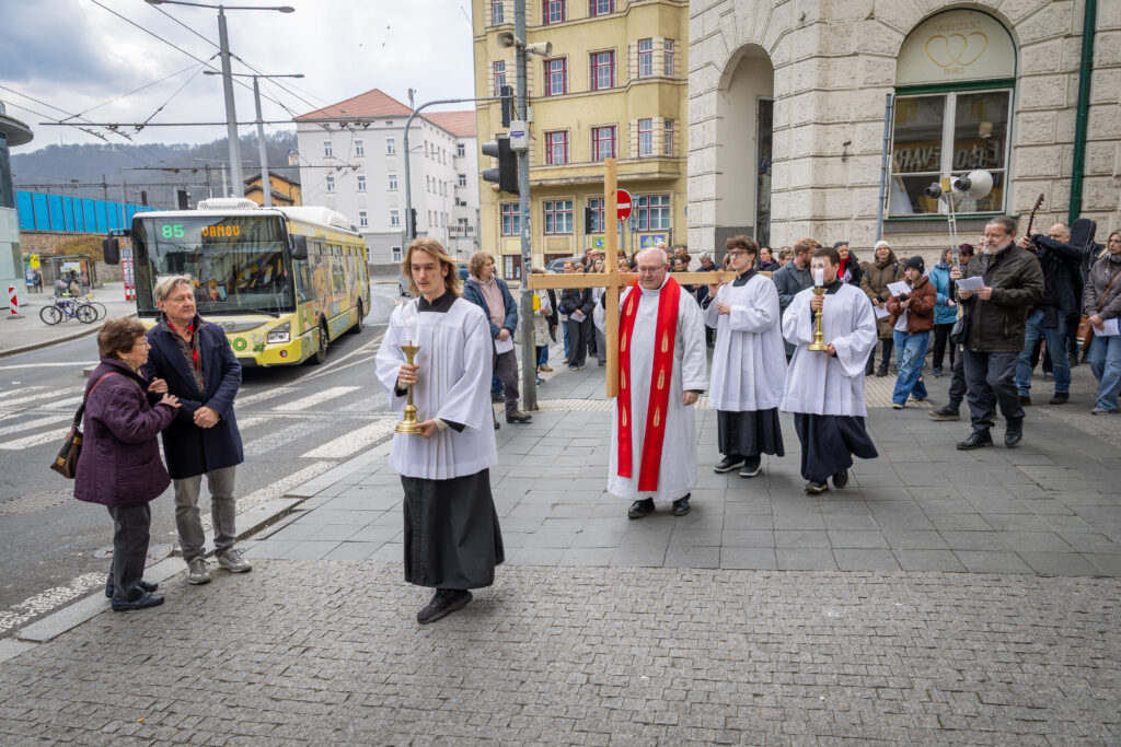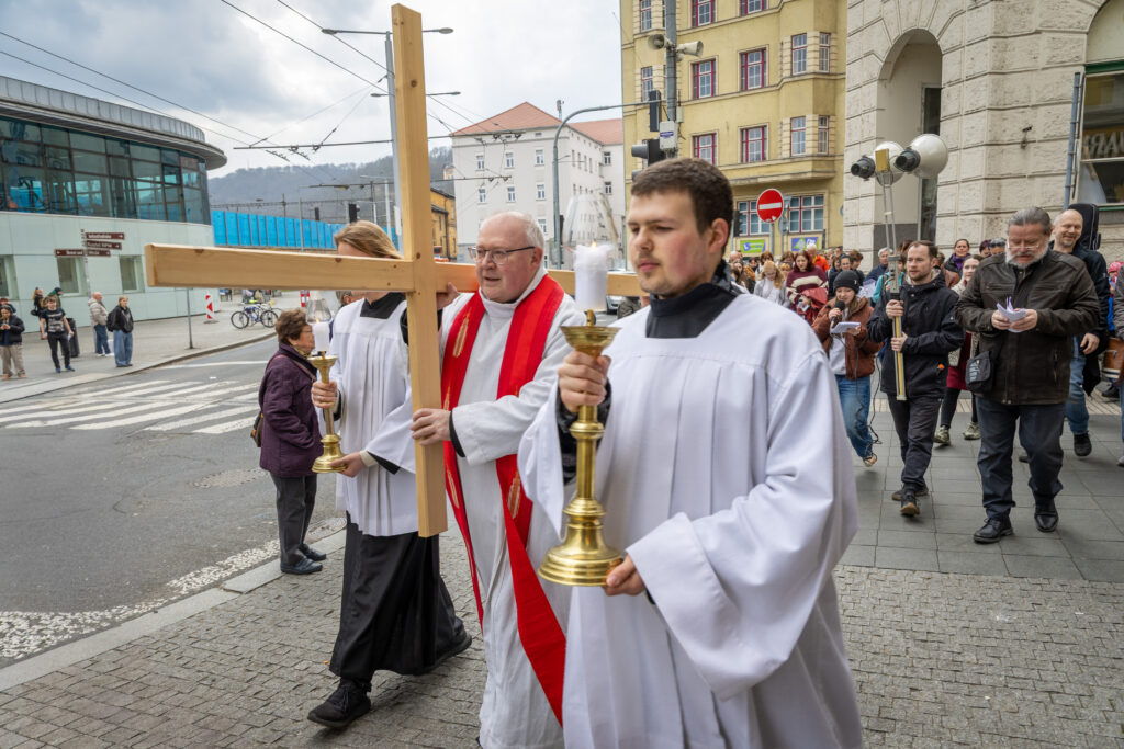 Jednotlivá zastavení křížové cesty byla naplněna modlitbou za město. Účastníkům připomínala, že nežijeme ve fantazijním světě, ale v reálném prostředí, které můžeme posvěcovat svou vírou a přímluvami.