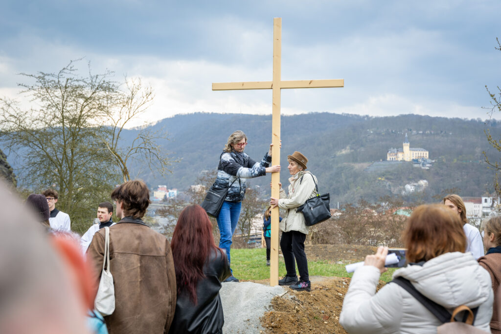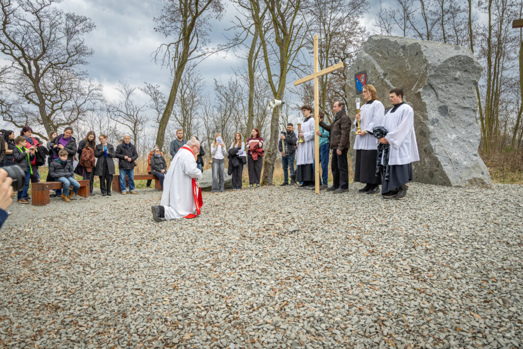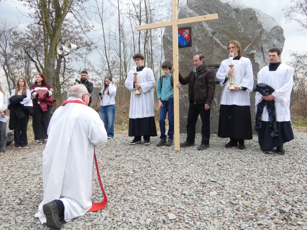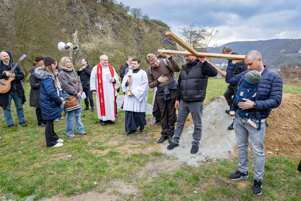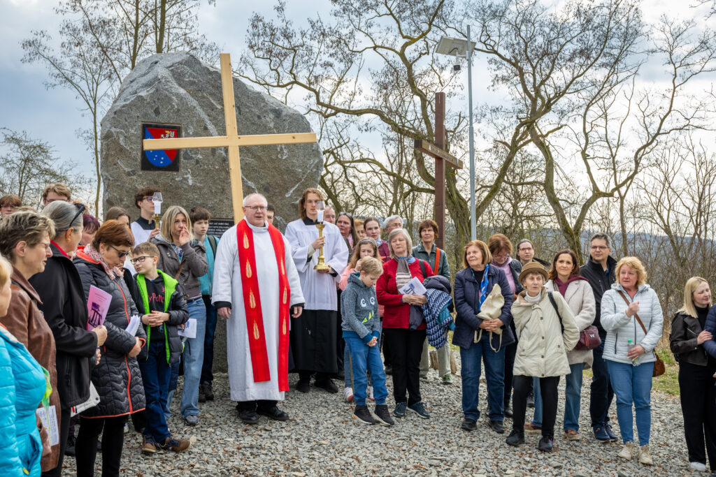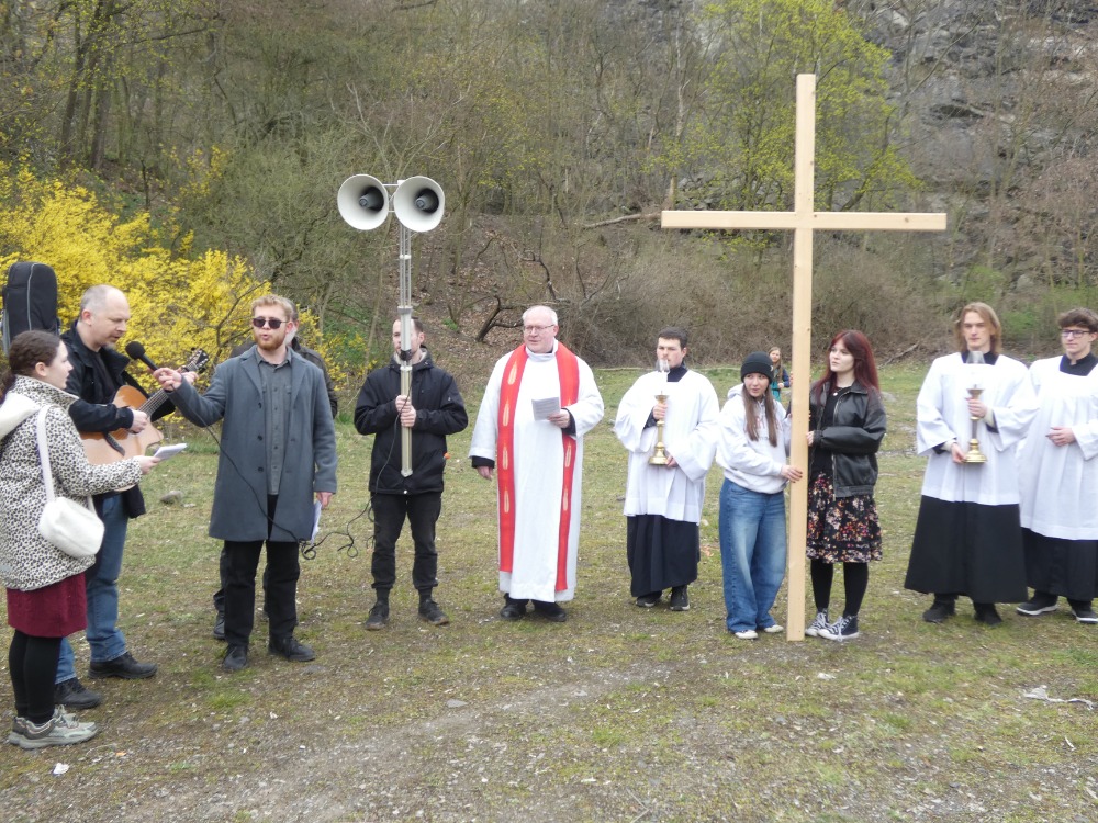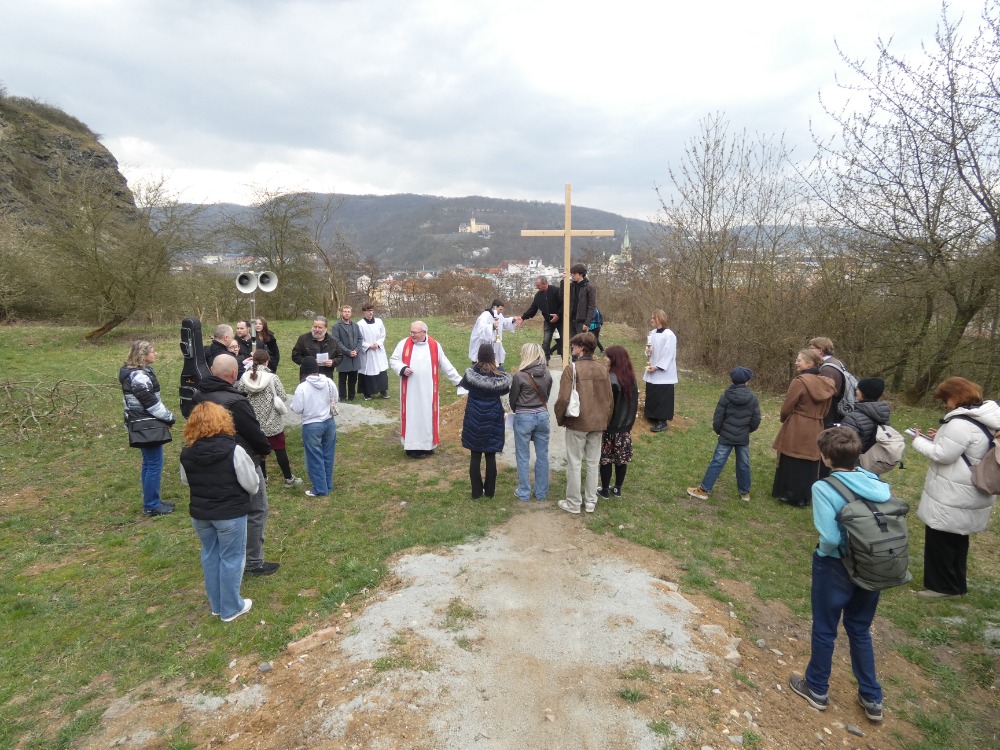 Křížová cesta vyvrcholila společnou modlitbou a požehnáním přineseného kříže. Patří velký obdiv členům ústecké farní komunity, kteří i letos, věrni tradici, doprovodili kněze až na samotný vrchol Mariánské skály.