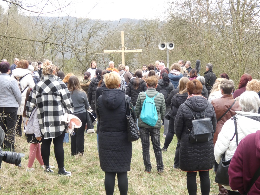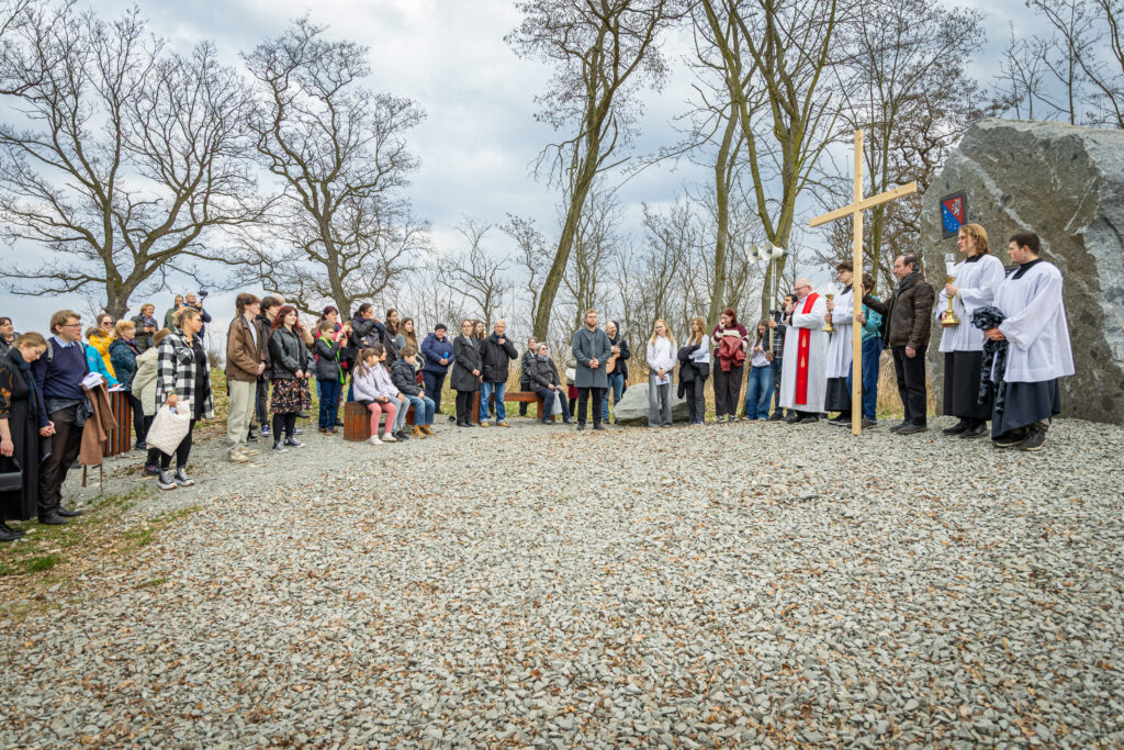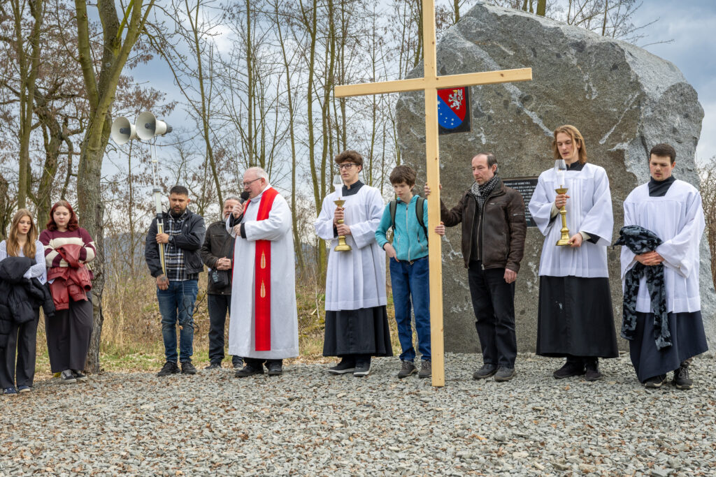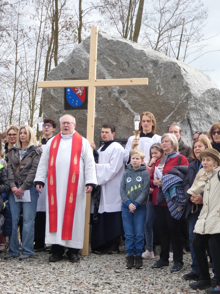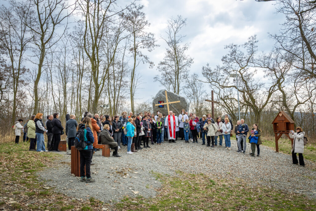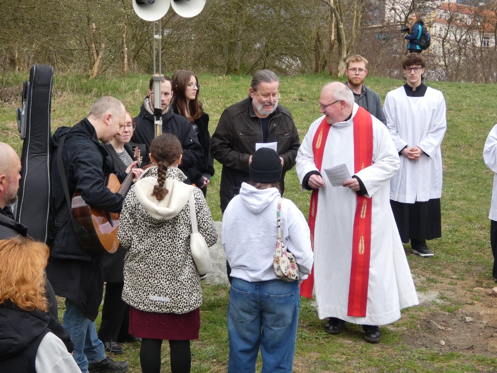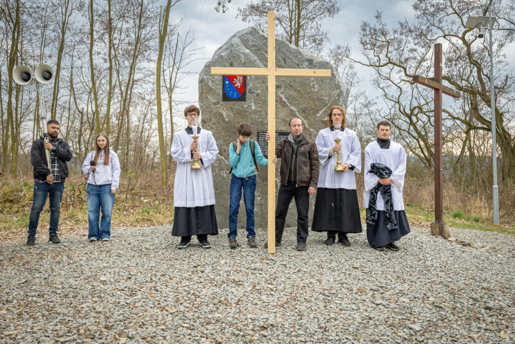 Křížová cesta vyvrcholila společnou modlitbou a požehnáním přineseného kříže. Patří velký obdiv členům ústecké farní komunity, kteří i letos, věrni tradici, doprovodili kněze až na samotný vrchol Mariánské skály.