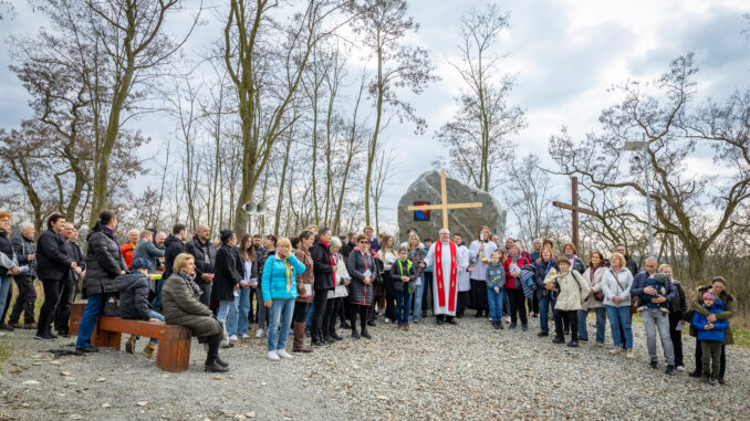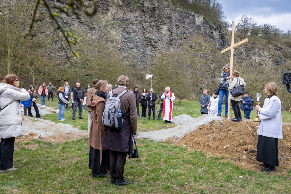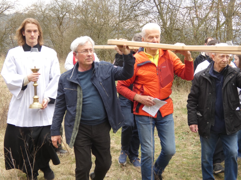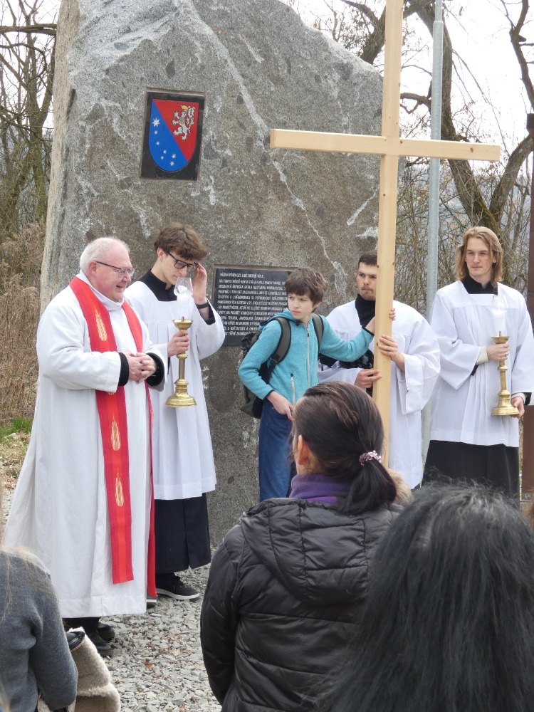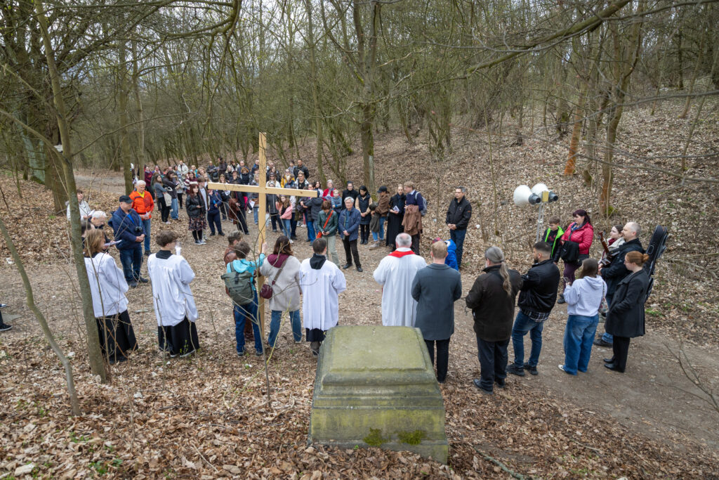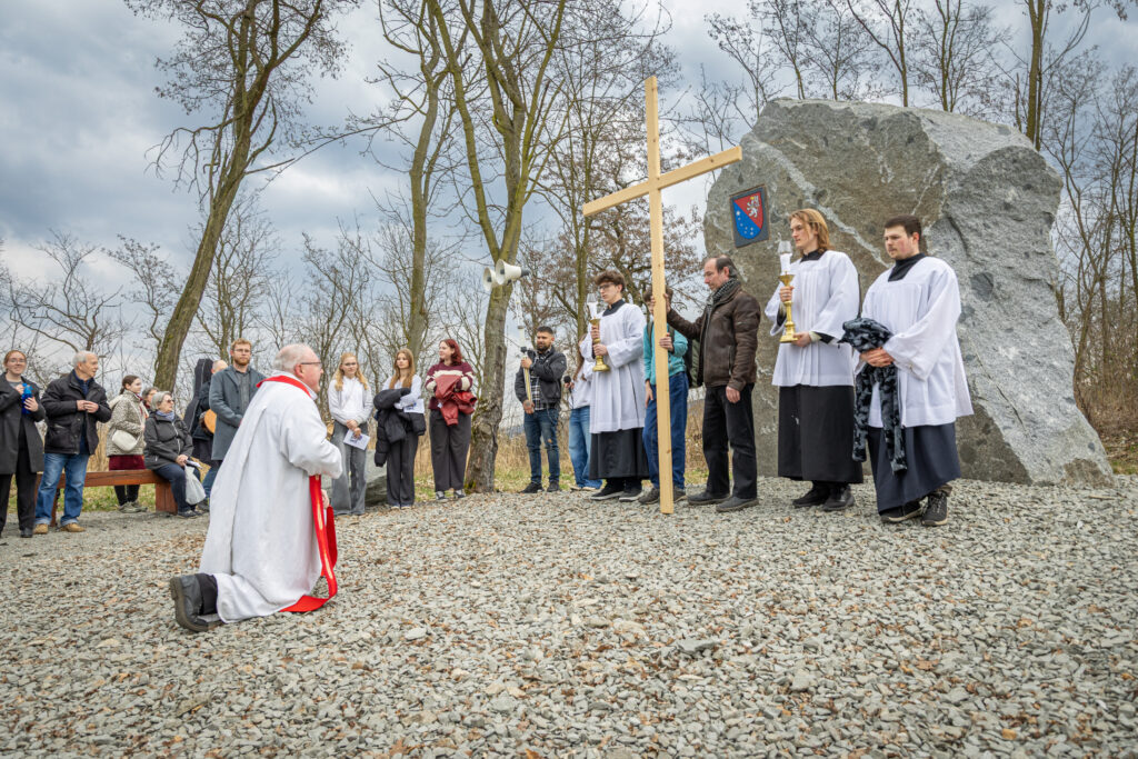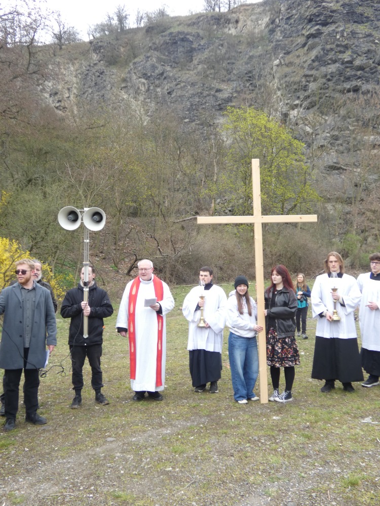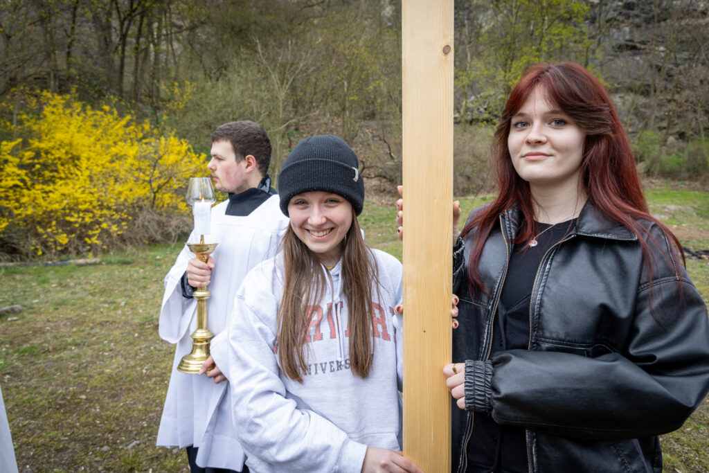 Křížová cesta vyvrcholila společnou modlitbou a požehnáním přineseného kříže. Patří velký obdiv členům ústecké farní komunity, kteří i letos, věrni tradici, doprovodili kněze až na samotný vrchol Mariánské skály.