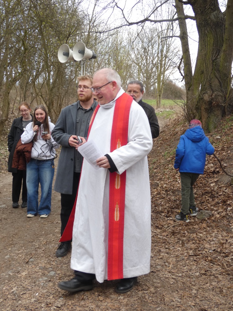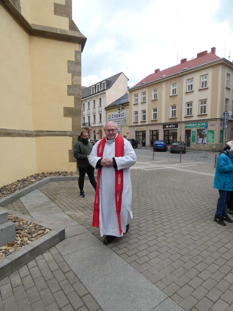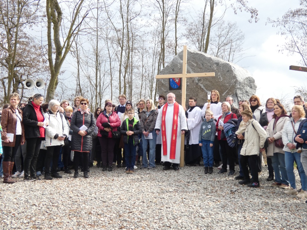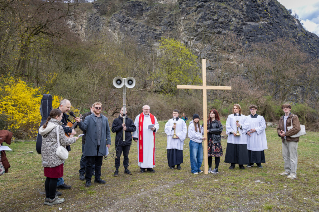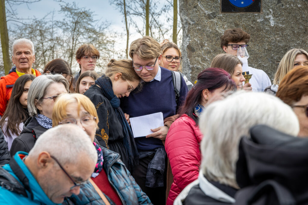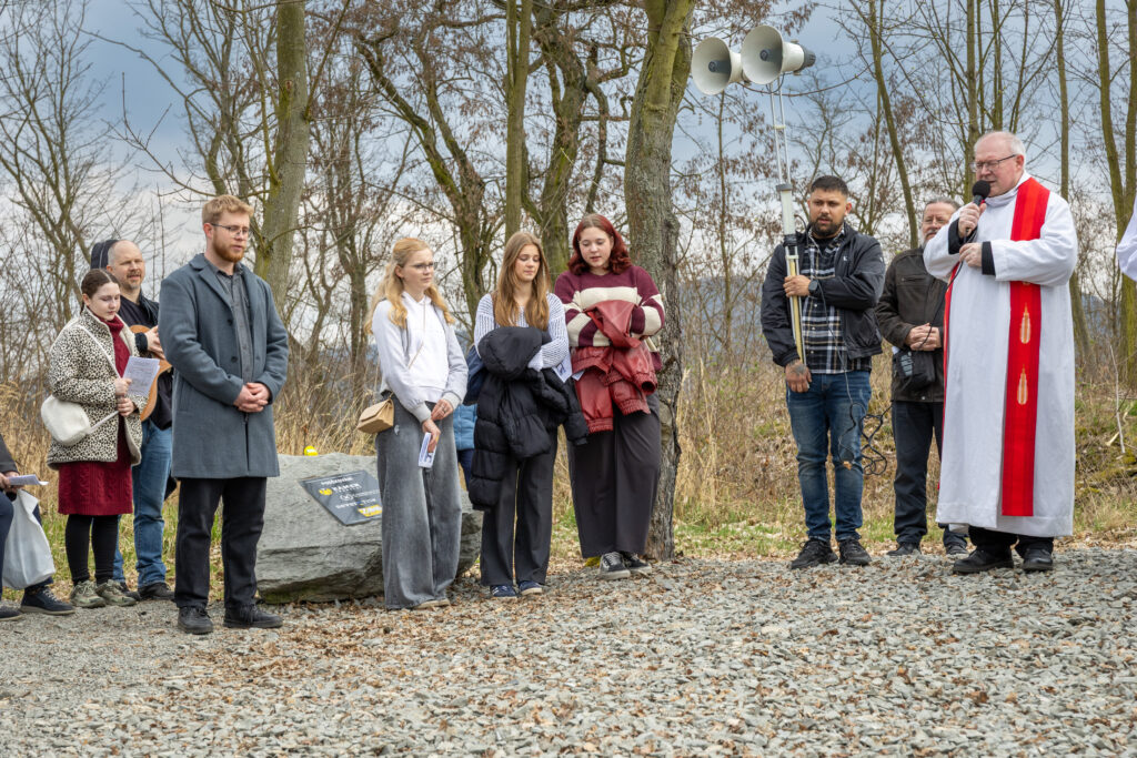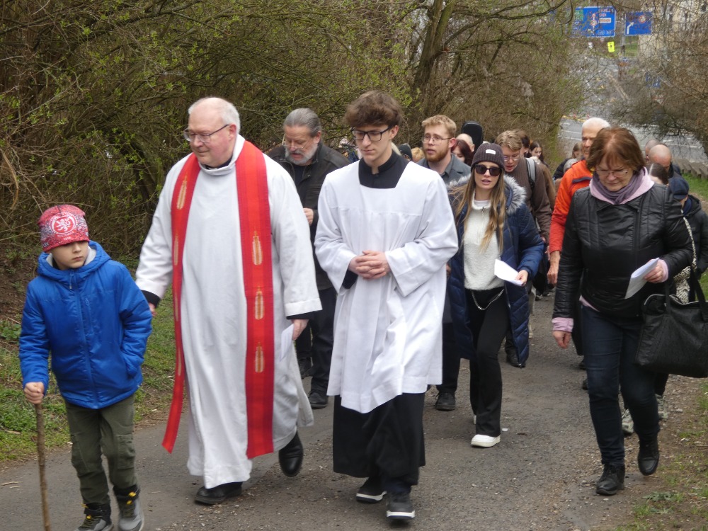 Křížová cesta vyvrcholila společnou modlitbou a požehnáním přineseného kříže. Patří velký obdiv členům ústecké farní komunity, kteří i letos, věrni tradici, doprovodili kněze až na samotný vrchol Mariánské skály.