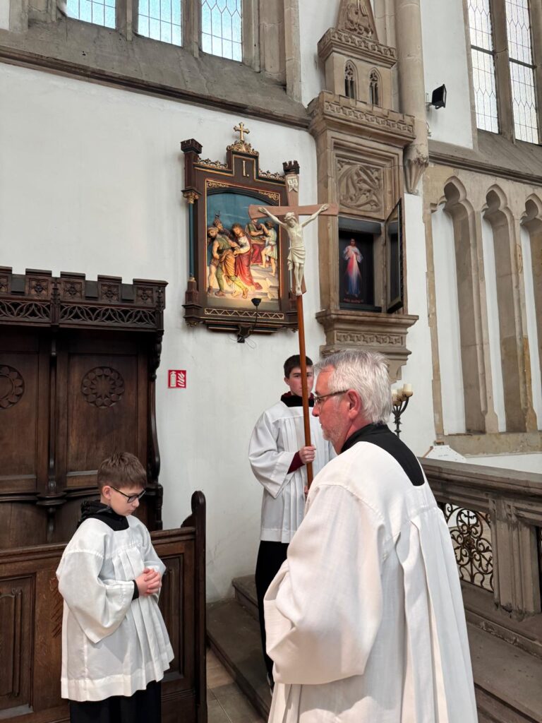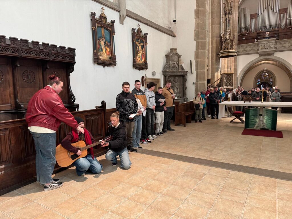 V pátek 27. března 2026, před Květnou nedělí, se v ústeckém kostele Nanebevzetí Panny Marie konala křížová cesta, do níž se zapojili mladí lidé, kteří si připravili jednotlivá zastavení.