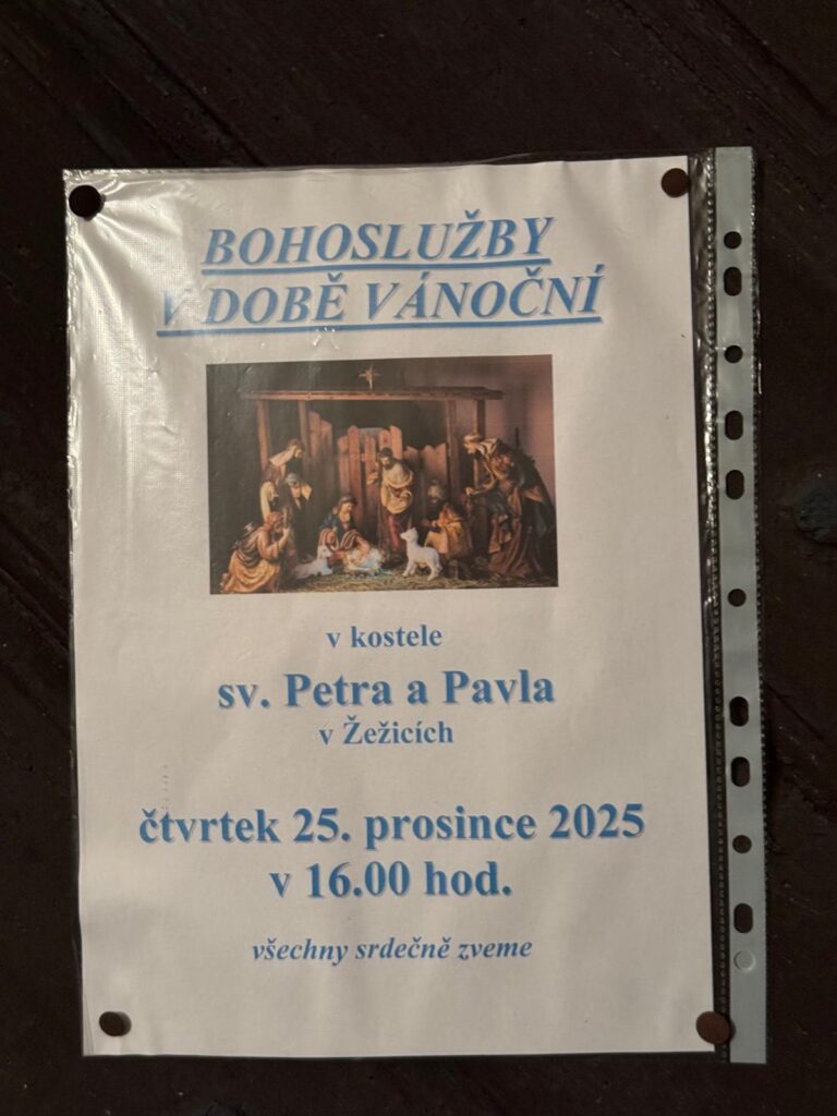 O Slavnosti narození našeho Pána Ježíše Krista 25. prosince 2025 se od 16 hodina konala v kostele sv. Petra a Pavla v Žežicích mše svatá. Malá, ale živá komunita místních křesťanů připravila kostel, aby se v něm mohla důstojně oslavit tato liturgická slavnost. Radujme se, neboť “narodil se nám…”.