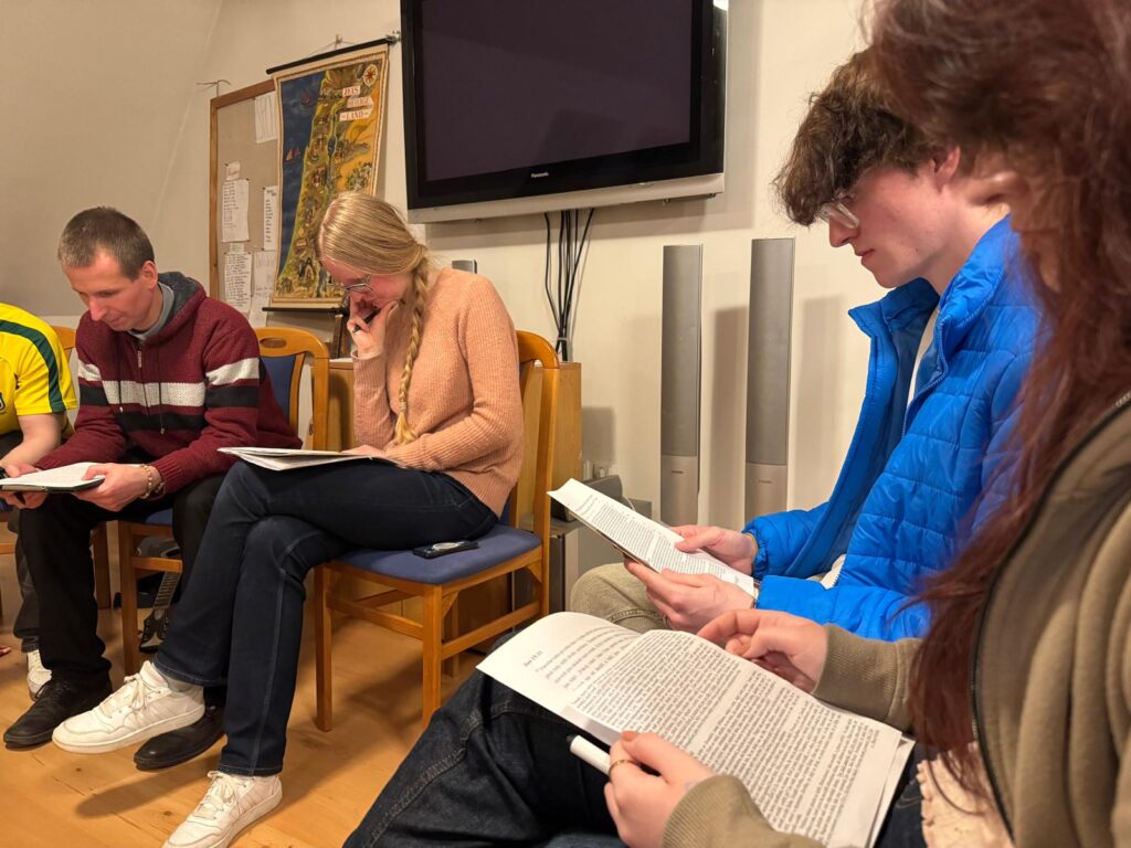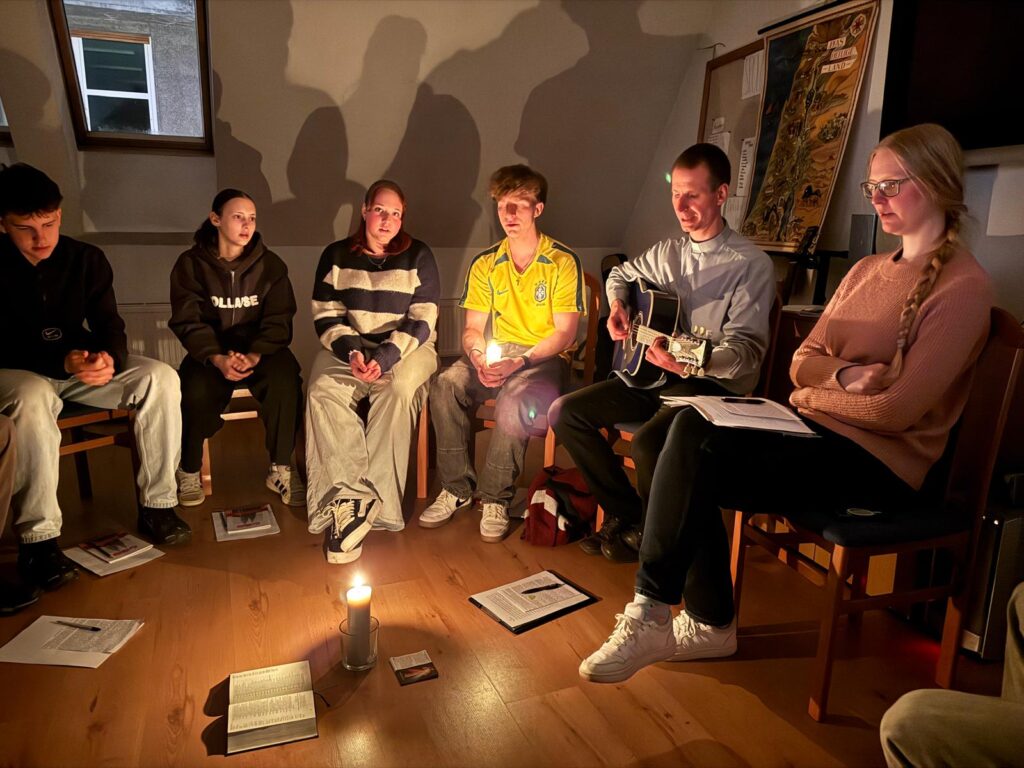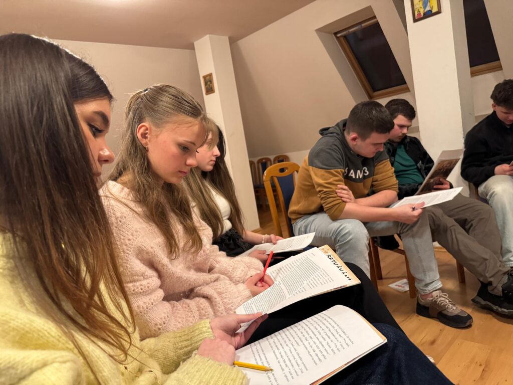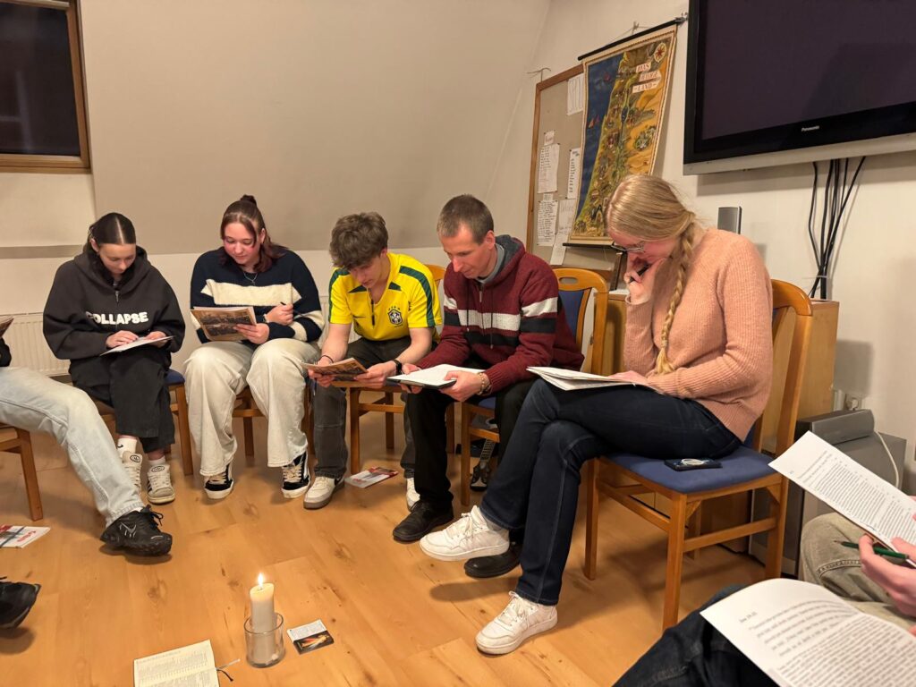 V pátek 10. dubna 2026 navštívil společenství mládeže v Ústí nad Labem Pater Jiří Smolek. Fotografie zachycují závěr setkání, které probíhalo v sále na Sinaji.