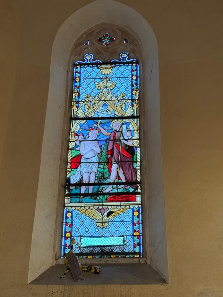 Vybavení je převážně pseudogotické (oltáře, kazatelna, lavice), kamenná křtitelnice z 19. století, barokní svícny.