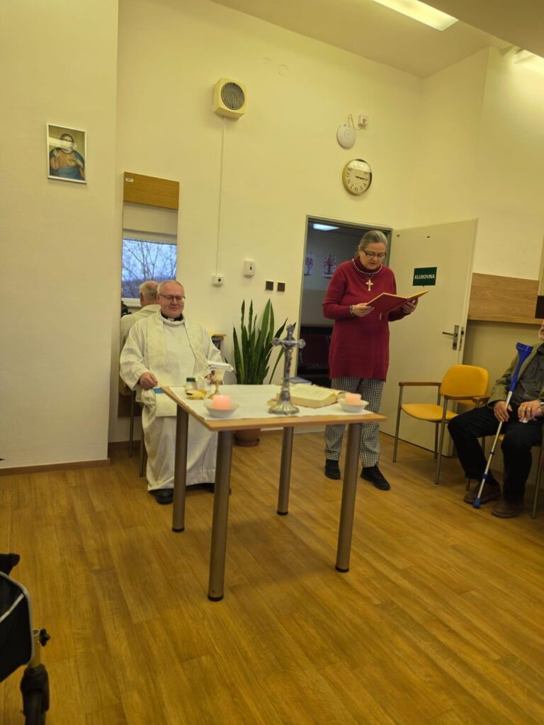 Ve středu 25. března 2026 se v domově seniorů v Doběticích konala mše svatá. Bylo velkou radostí, že tentokrát mohlo přijít více seniorů než obvykle. Velké poděkování patří dobrovolnicím z farní Charity, které našim nejstarším pomohly s přesunem z pokojů – ať už je doprovodily, nebo přivezly na vozíčcích. Patří jim za to náš dík a také příslib nebeské odměny. Právě Pannu Marii jsme si v tento den připomněli pro její pokorné „Fiat mihi secundum verbum tuum“ (Staň se mi podle slova tvého), kterým bez výhrady přijala Boží vůli.