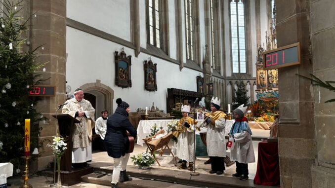 Děkujeme tříkrálovým koledníkům i jejich doprovodu za toto ztvárnění mudrců, kteří se šli poklonit do Betléma narozenému Kristu a přejeme jim, aby i v dalších dnech pro ně měli lidé štědrá a otevřená srdce tak, jako tomu bylo v ústeckém kostele.