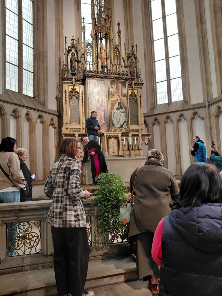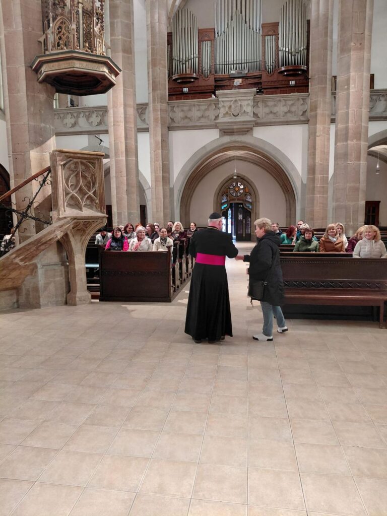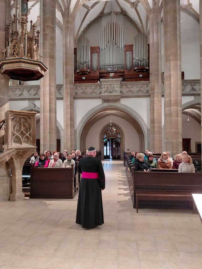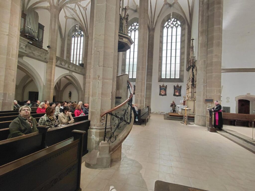 Po seznámení s historií kostela, jeho interiérem a svátostnou praxí církve se sestry společně pomodlily za sebe, své blízké i za ty, o které denně pečují v prostředí spojeném s obětavou pomocí trpícím. Arciděkan Davídek v závěru připomněl hlubokou symboliku tohoto dne – od chvíle, kdy Panna Maria řekla archandělovi Gabrielovi své „Fiat“, zbývá přesně devět měsíců do Božího hodu vánočního. Setkání uzavřelo přání, aby sestry na jejich cestě i nadále provázelo Boží požehnání a dostatek sil.