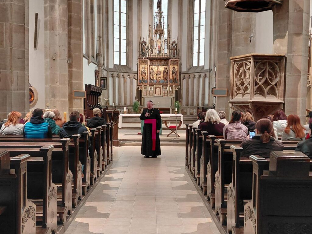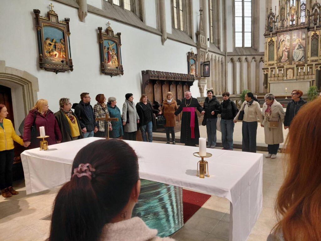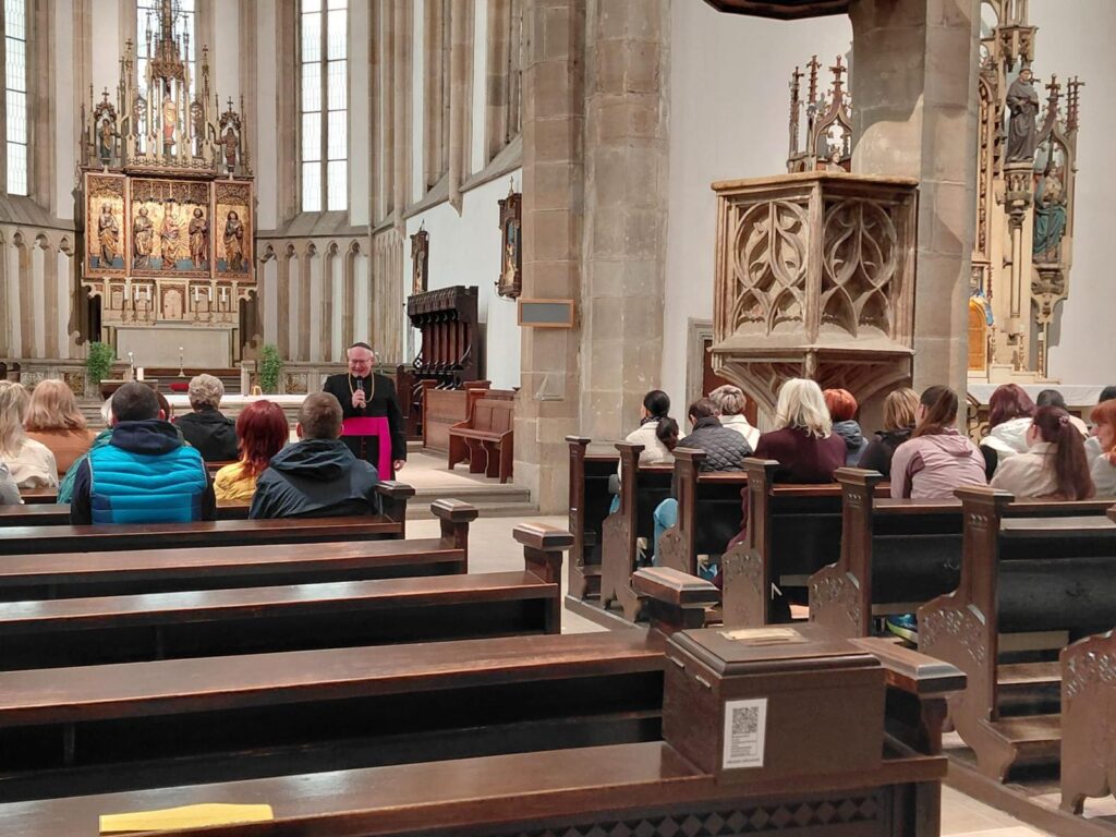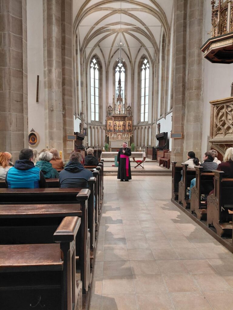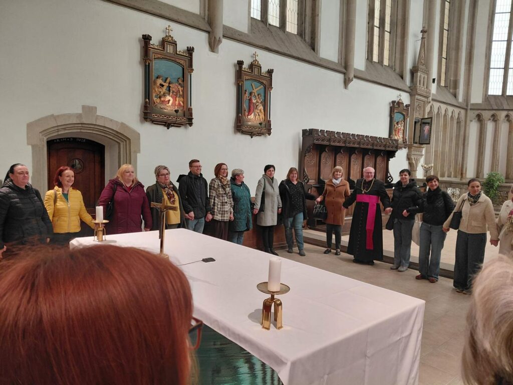 Po seznámení s historií kostela, jeho interiérem a svátostnou praxí církve se sestry společně pomodlily za sebe, své blízké i za ty, o které denně pečují v prostředí spojeném s obětavou pomocí trpícím. Arciděkan Davídek v závěru připomněl hlubokou symboliku tohoto dne – od chvíle, kdy Panna Maria řekla archandělovi Gabrielovi své „Fiat“, zbývá přesně devět měsíců do Božího hodu vánočního. Setkání uzavřelo přání, aby sestry na jejich cestě i nadále provázelo Boží požehnání a dostatek sil.